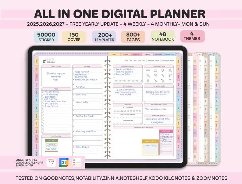 All-in-One Digital Planner 2025, 2026, 2027, Digital Planner, Digital Journal, Digital Goodnotes Template, Weekly, Daily Planner, Notability